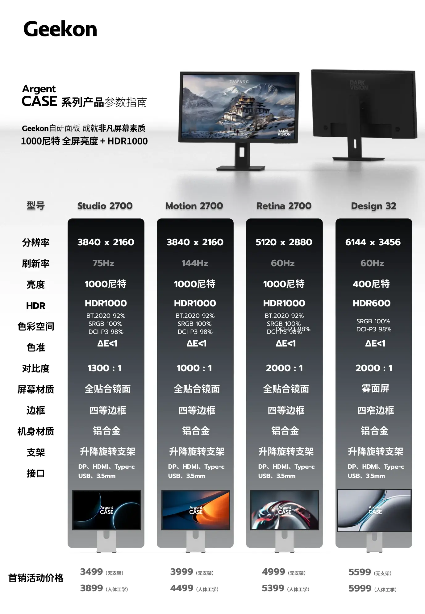 此外,Studio 系列还具备高达1000 nit的全局无衰减亮度,即使在明亮的环境中使用,屏幕内容依然清晰锐利,不会受到环境光的影响。这样的亮度水平不仅增强了视觉舒适度,还保证了在各种光照条件下的出色显示效果。